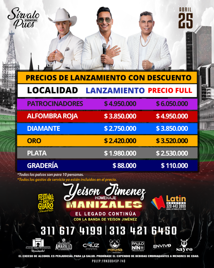 📅 25 de abril 📍 Plaza de Toros “La Monumental” – #Manizales 🎟️ Asegura tu boleta YA: 💻 LATINBOLETOS.COM 📲 320 443 3999 🎫 Puntos de venta: 🏪 Cable Plaza Piso 1 cerca de los cajeros ¡No te quedés por fuera! 🔥